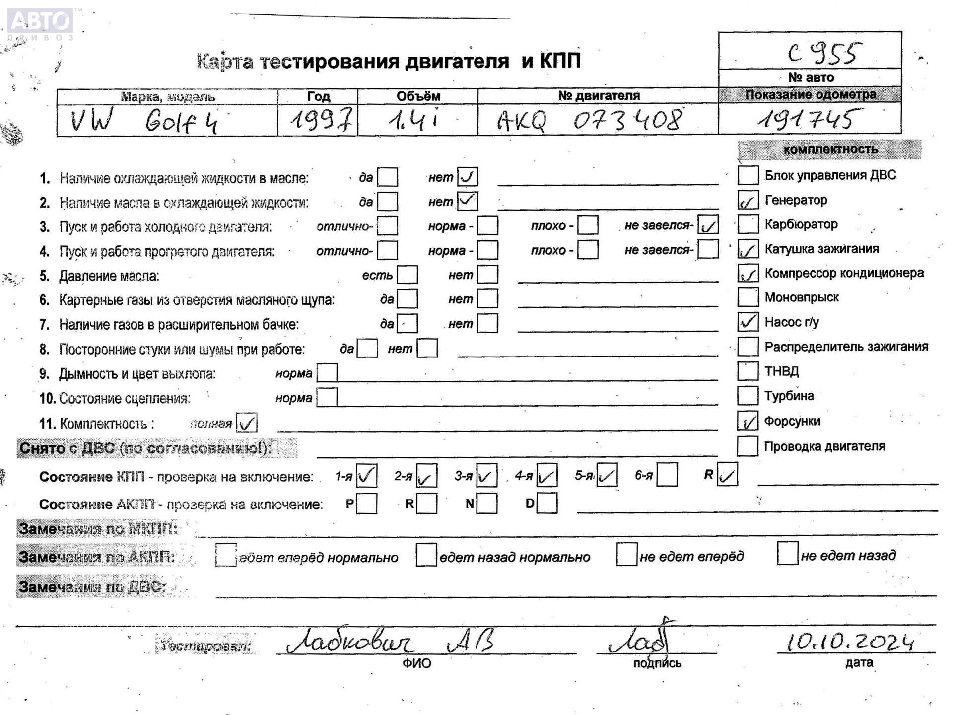 | Марка / Модель / Год: | Volkswagen Golf-4 1998 |