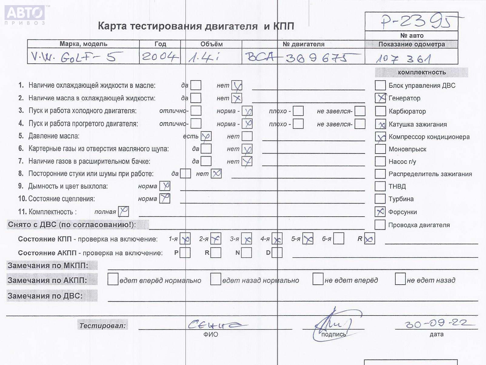 | Марка / Модель / Год: | Volkswagen Golf-5 2004 |