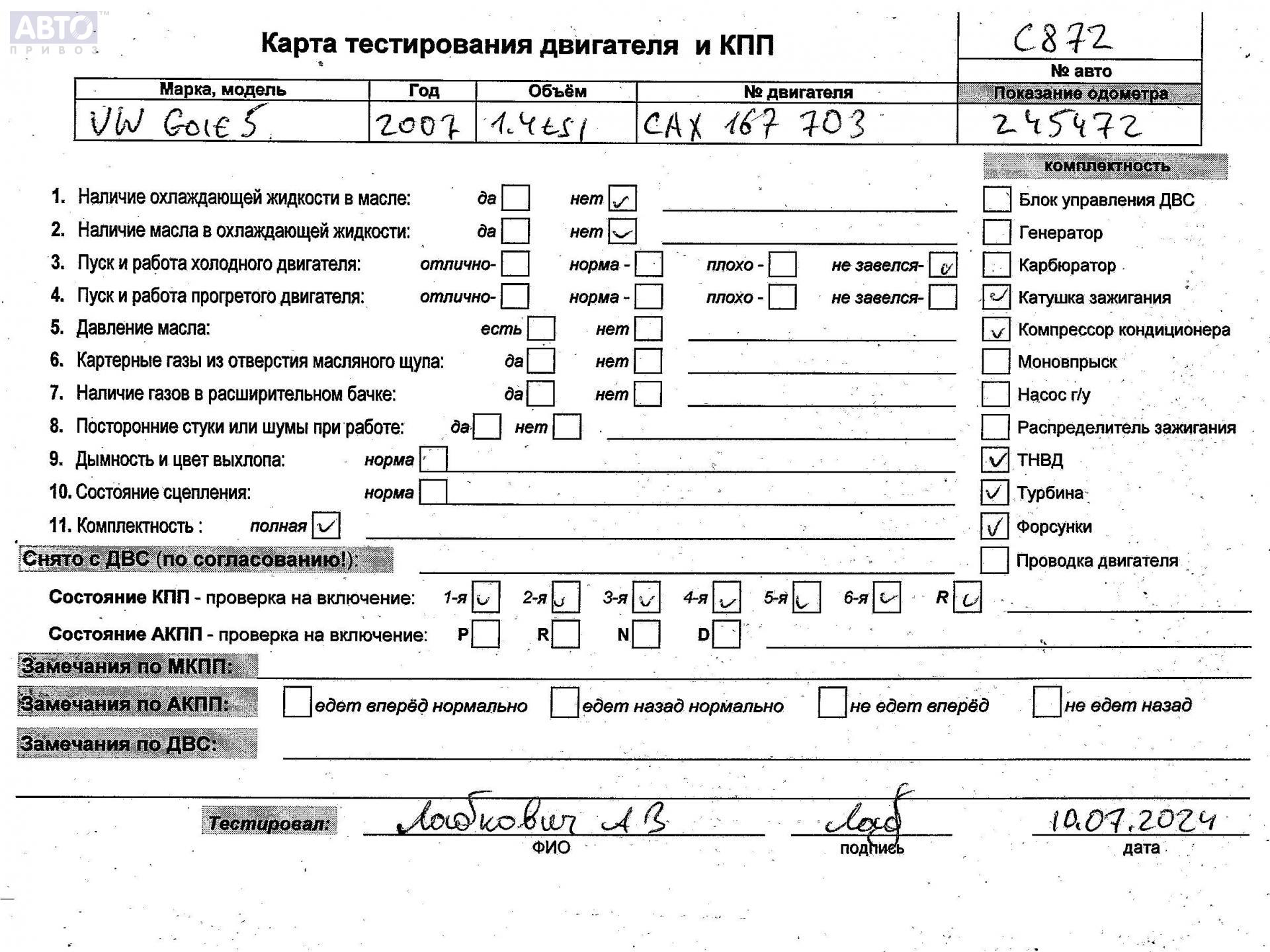 | Марка / Модель / Год: | Volkswagen Golf-5 2009 |