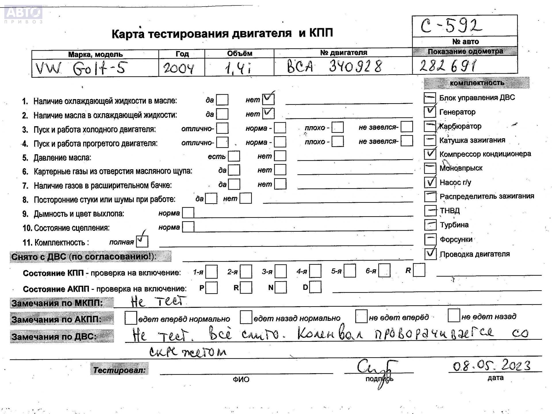 | Марка / Модель / Год: | Volkswagen Golf-5 2004 |