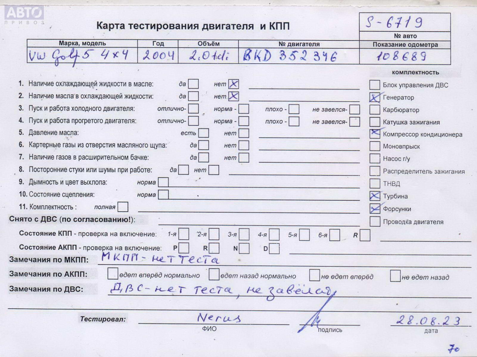 | Марка / Модель / Год: | Volkswagen Golf-5 2004 |