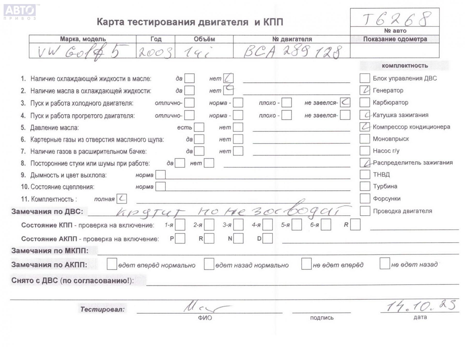 | Марка / Модель / Год: | Volkswagen Golf-5 2004 |