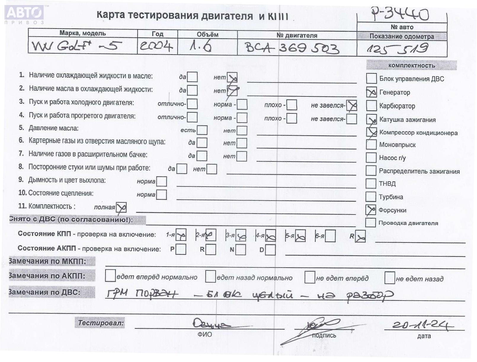 | Марка / Модель / Год: | Volkswagen Golf-5 2004 |