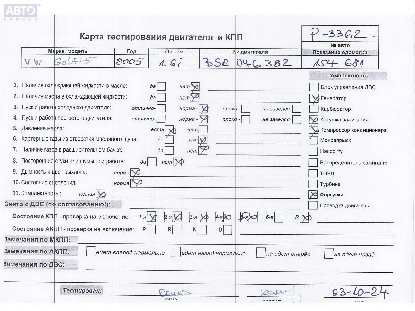 | Марка / Модель / Год: | Volkswagen Golf-5 2005 |