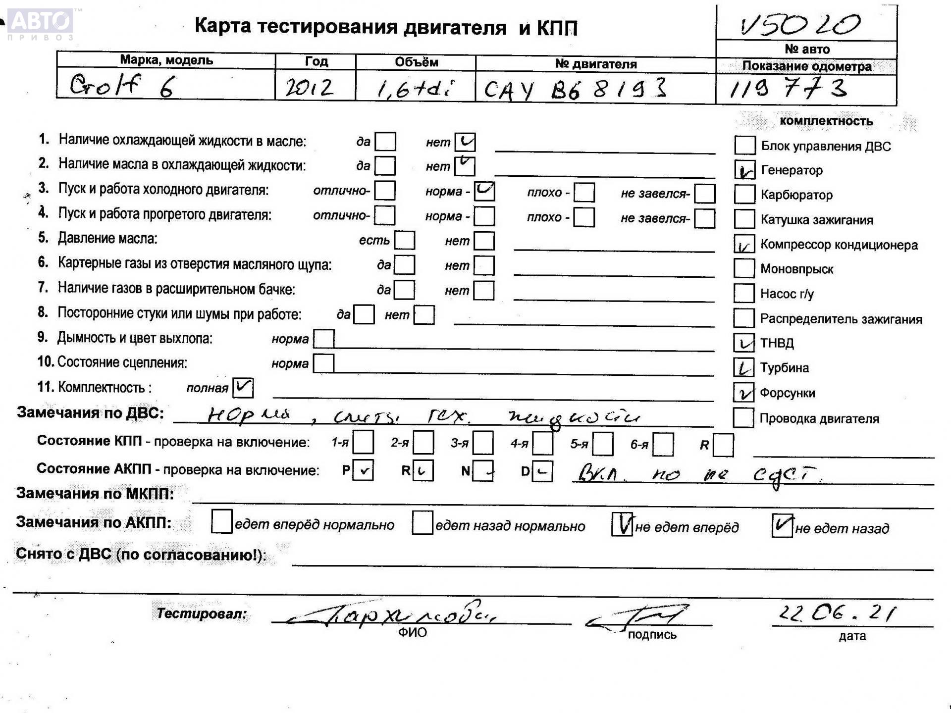 | Автомобиль / VIN: | V5020 WVWZZZ1KZCM656031 |