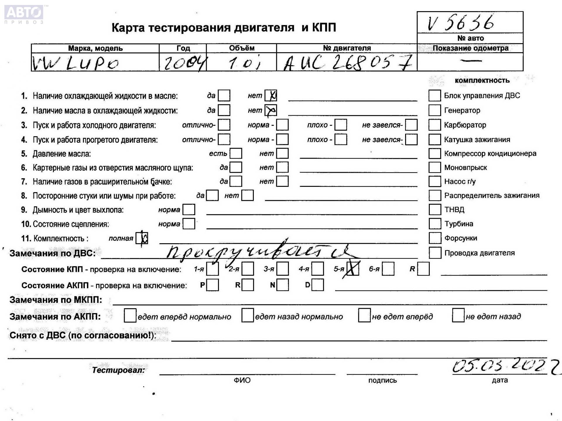 | Марка / Модель / Год: | Volkswagen Lupo 2004 |