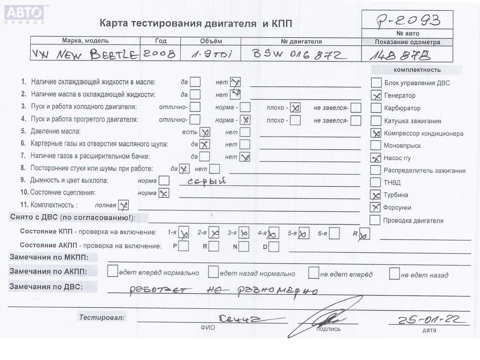 | Марка / Модель / Год: | Volkswagen New Beetle 2008 |