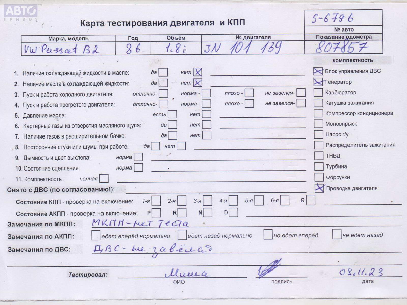| Марка / Модель / Год: | Volkswagen Passat B2 1986 |