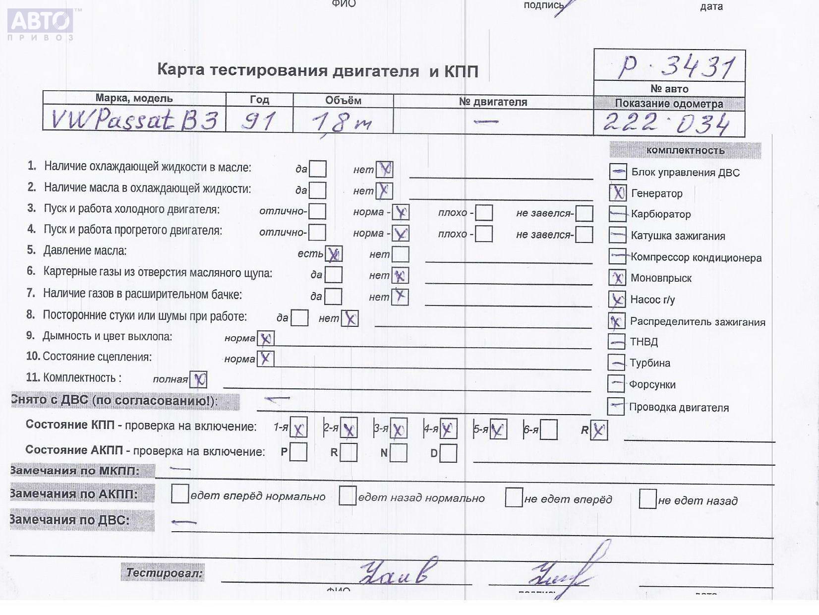 | Марка / Модель / Год: | Volkswagen Passat B3 1991 |