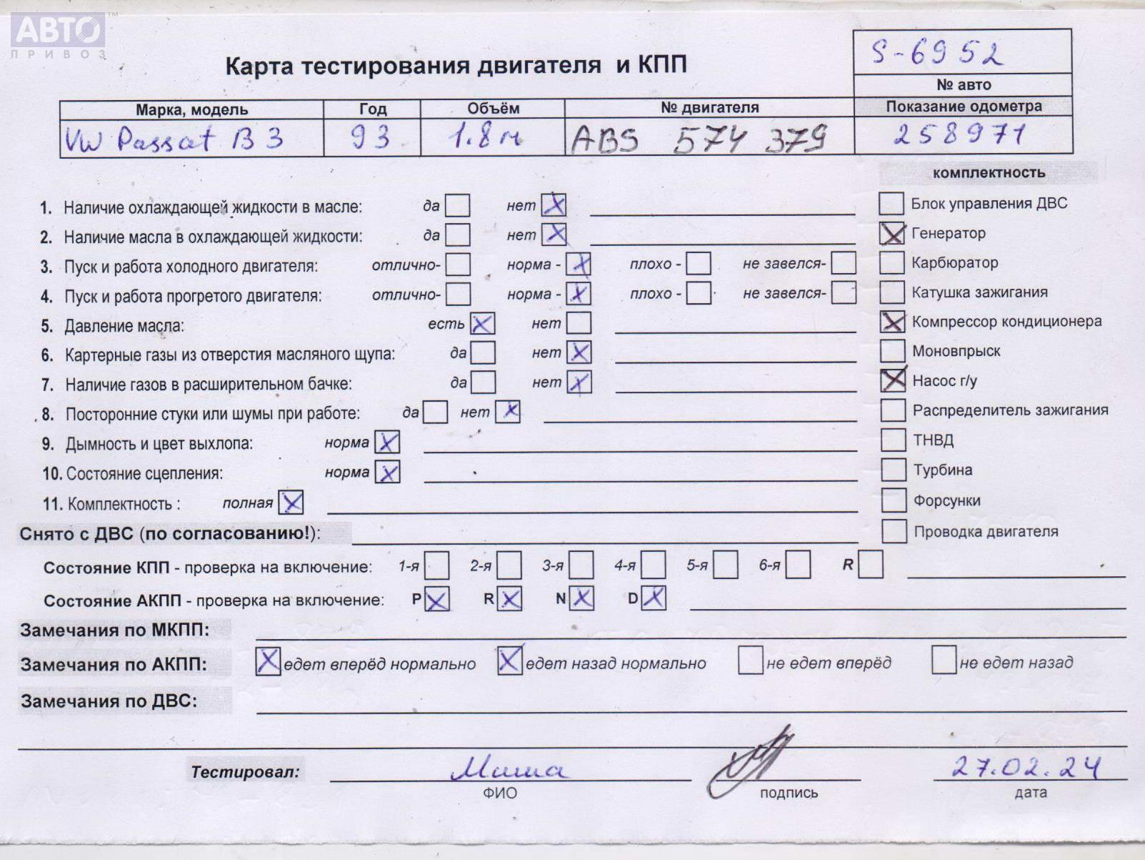 | Марка / Модель / Год: | Volkswagen Passat B3 1993 |