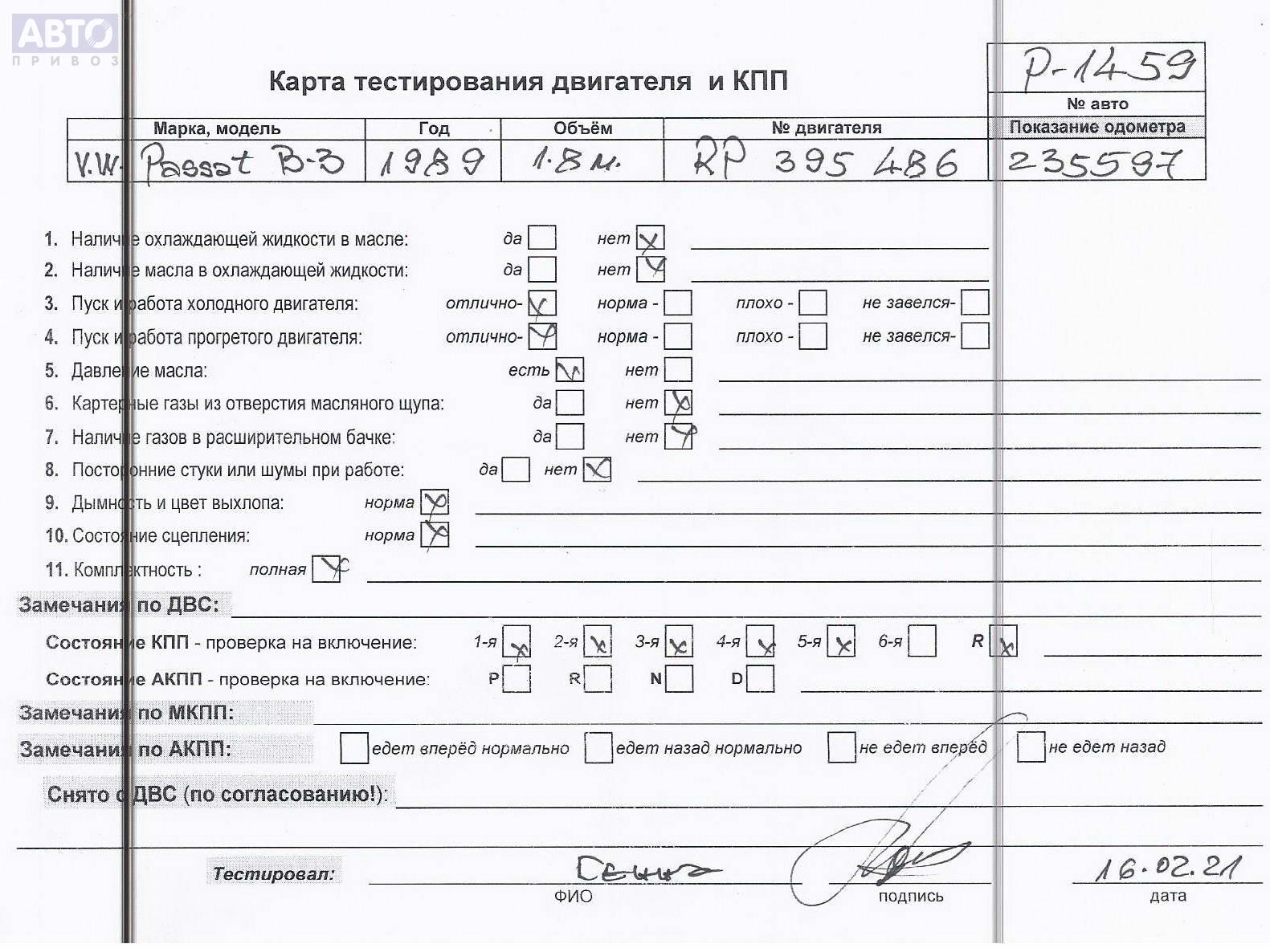 | Марка / Модель / Год: | Volkswagen Passat B3 1989 |
