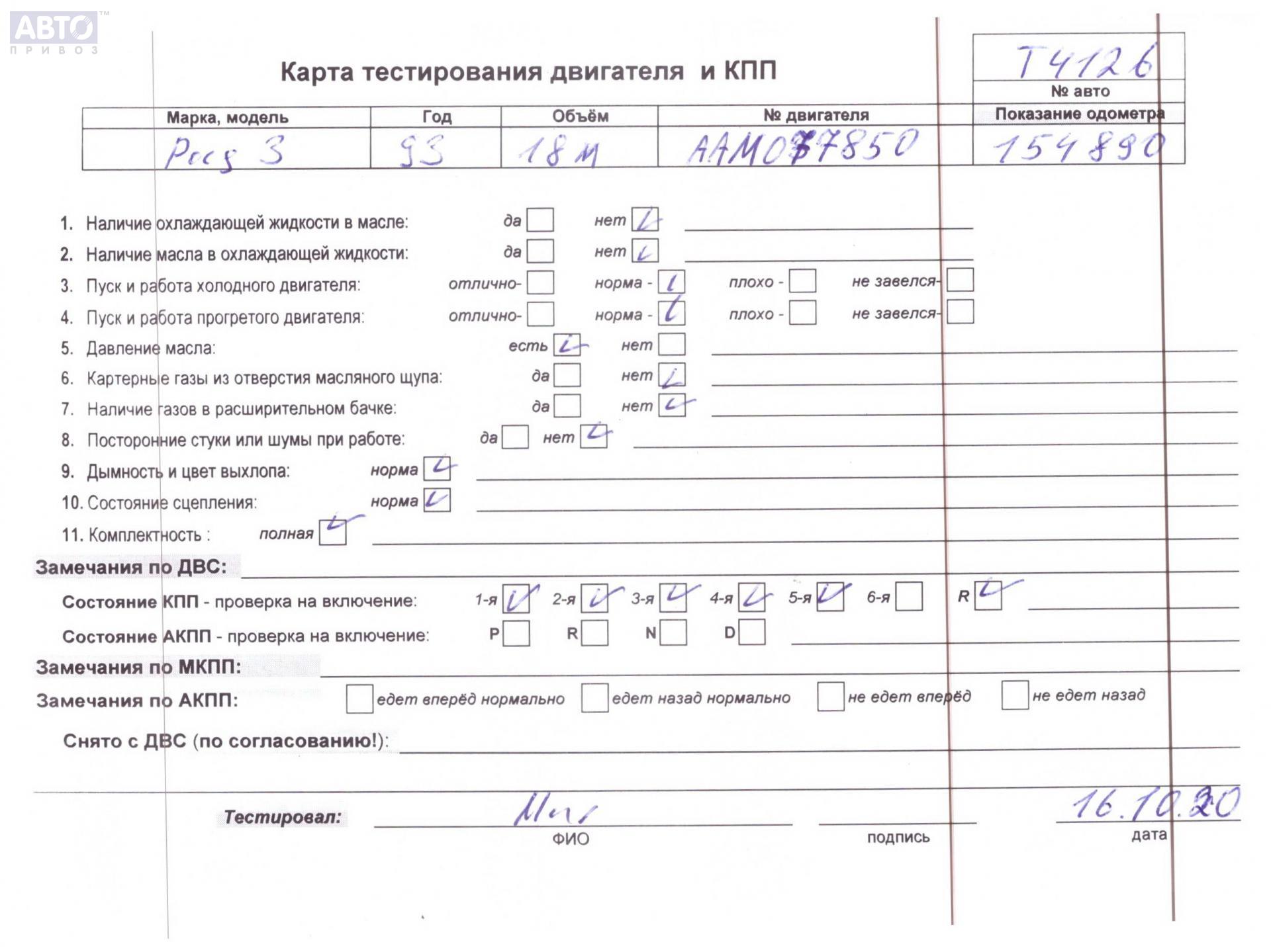 | Автомобиль / VIN: | T4126 WVWZZZ31ZPE214804 |