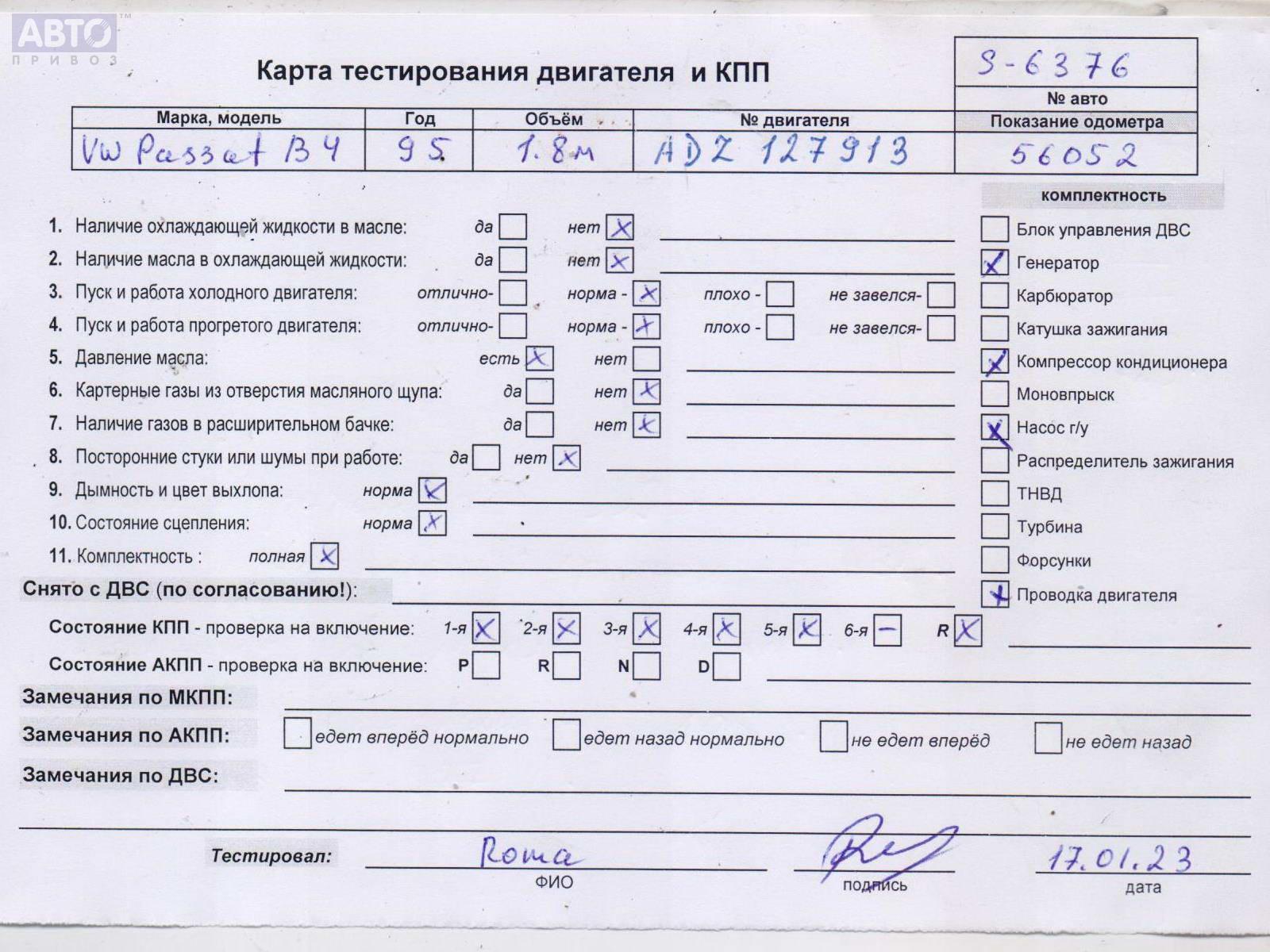 | Марка / Модель / Год: | Volkswagen Passat B4 1995 |
