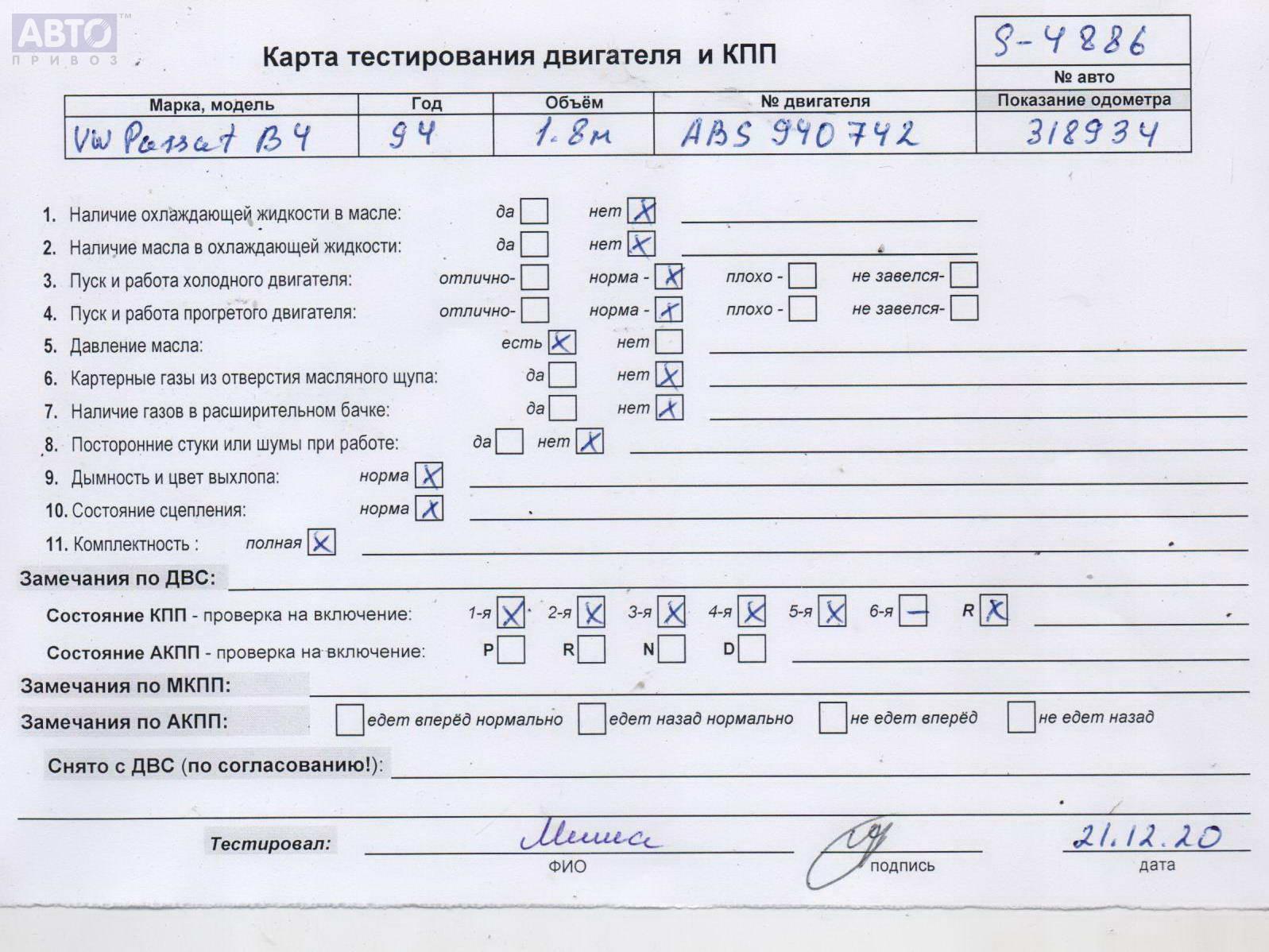 | Марка / Модель / Год: | Volkswagen Passat B4 1994 |