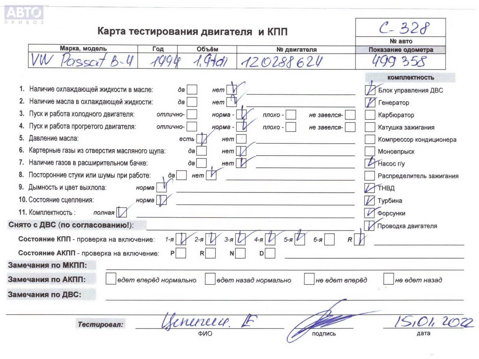| Марка / Модель / Год: | Volkswagen Passat B4 1994 |