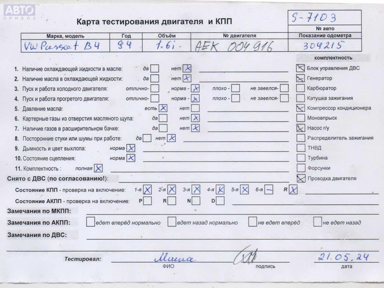 | Марка / Модель / Год: | Volkswagen Passat B4 1994 |
