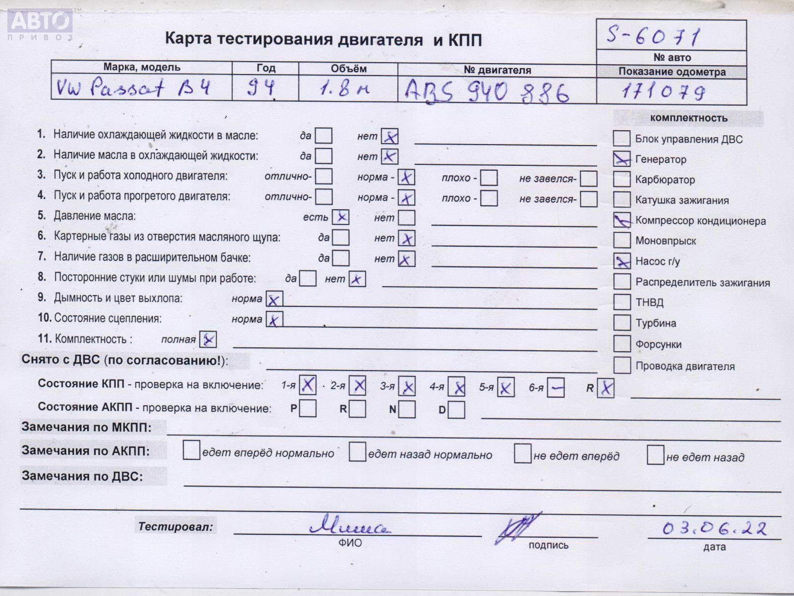 | Марка / Модель / Год: | Volkswagen Passat B4 1994 |