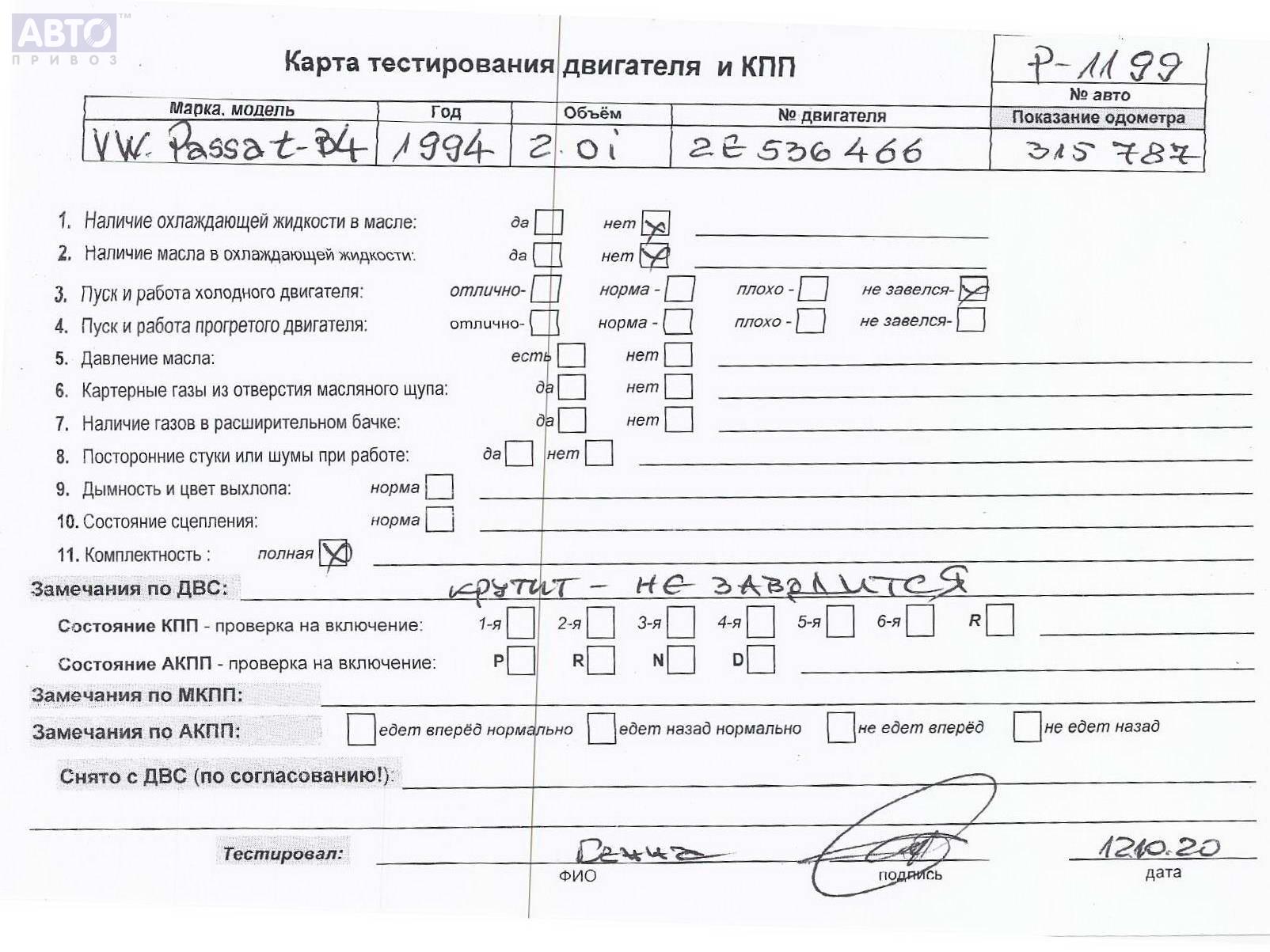 | Марка / Модель / Год: | Volkswagen Passat B4 1994 |