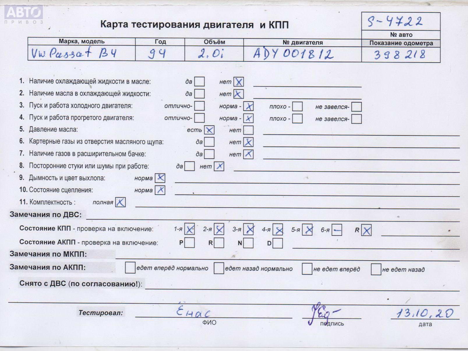 | Марка / Модель / Год: | Volkswagen Passat B4 1994 |