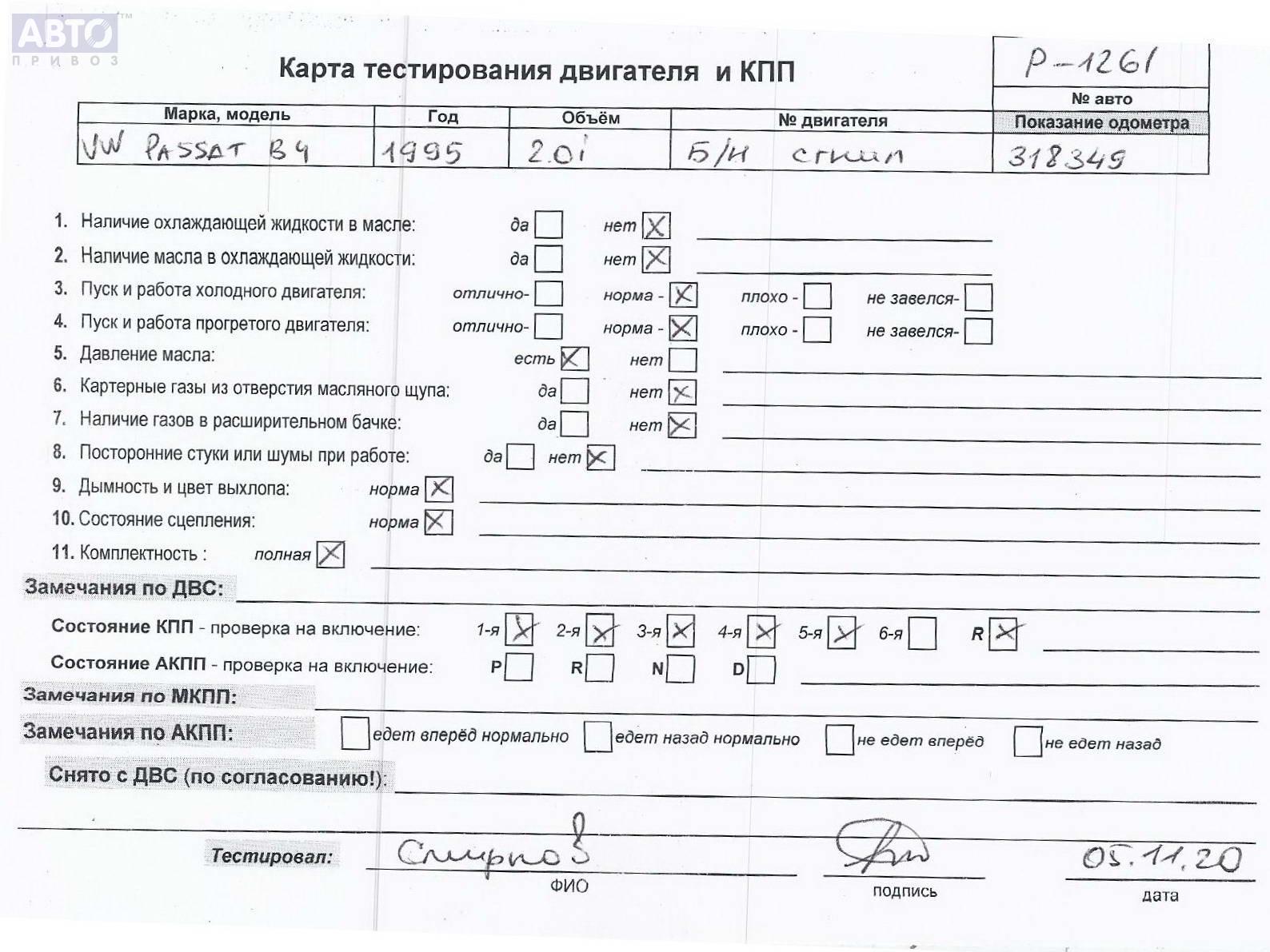 | Марка / Модель / Год: | Volkswagen Passat B4 1995 |