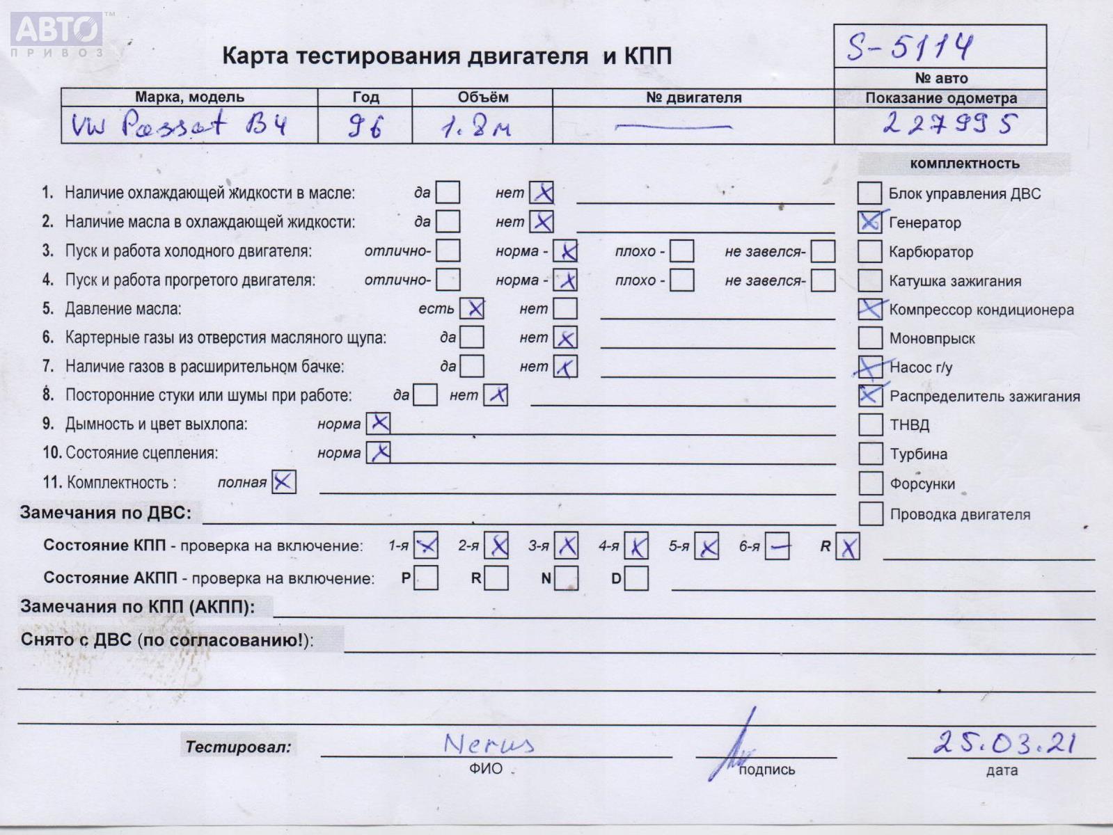 | Марка / Модель / Год: | Volkswagen Passat B4 1996 |
