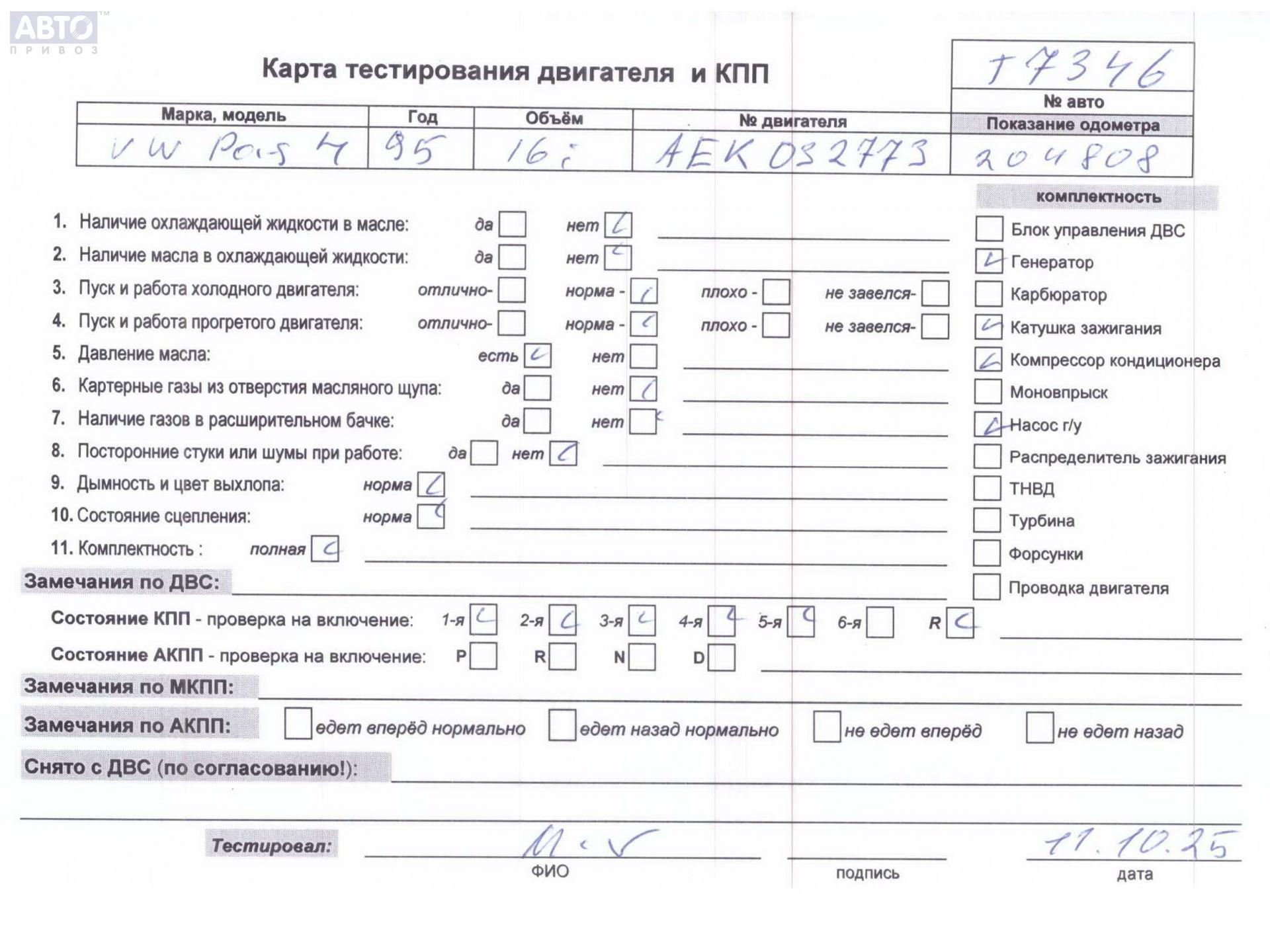 | Марка / Модель / Год: | Volkswagen Passat B4 1995 |