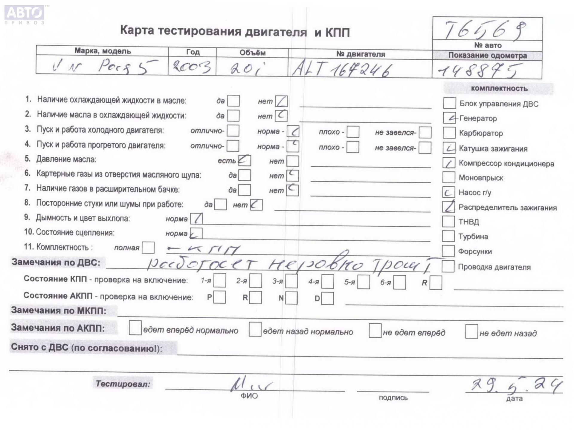 | Марка / Модель / Год: | Volkswagen Passat B5+ (GP) 2003 |
