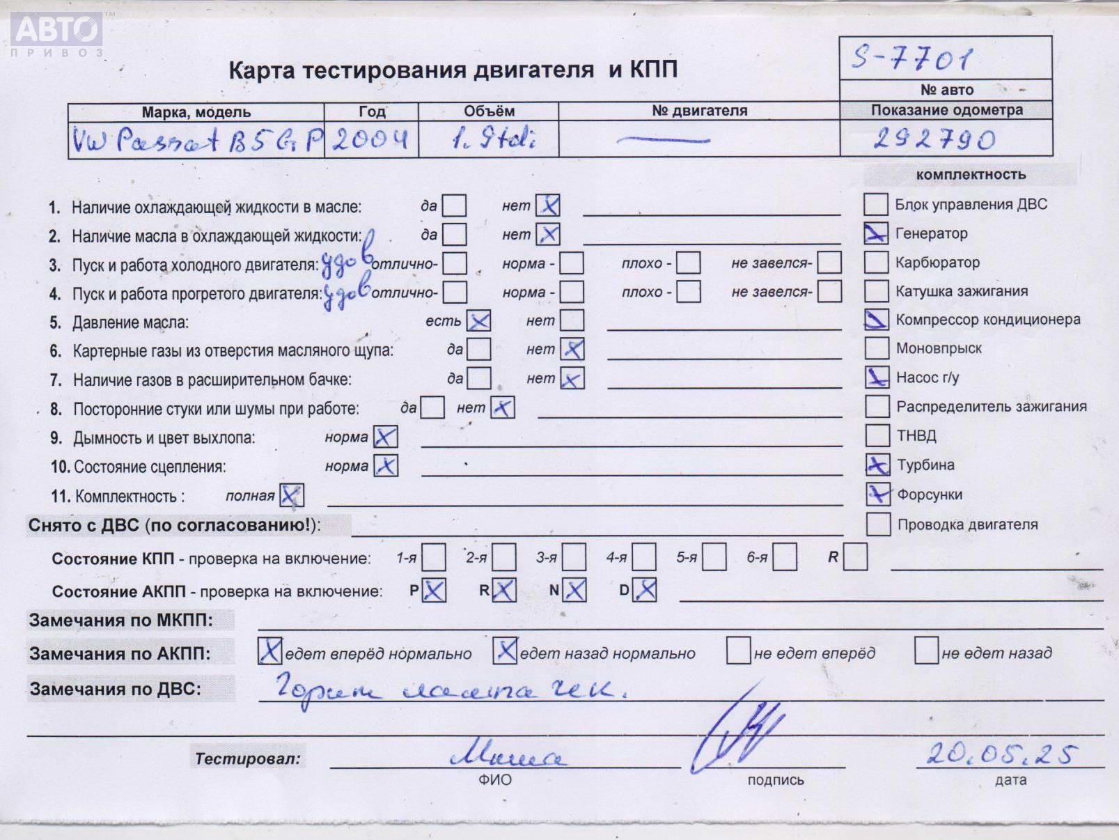 | Марка / Модель / Год: | Volkswagen Passat B5+ (GP) 2004 |