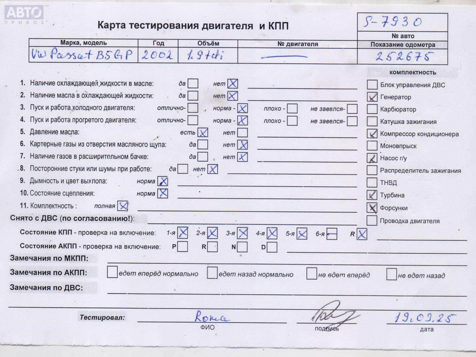 | Марка / Модель / Год: | Volkswagen Passat B5+ (GP) 2002 |