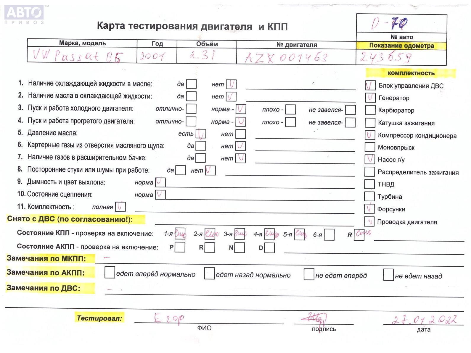 | Марка / Модель / Год: | Volkswagen Passat B5+ (GP) 2001 |