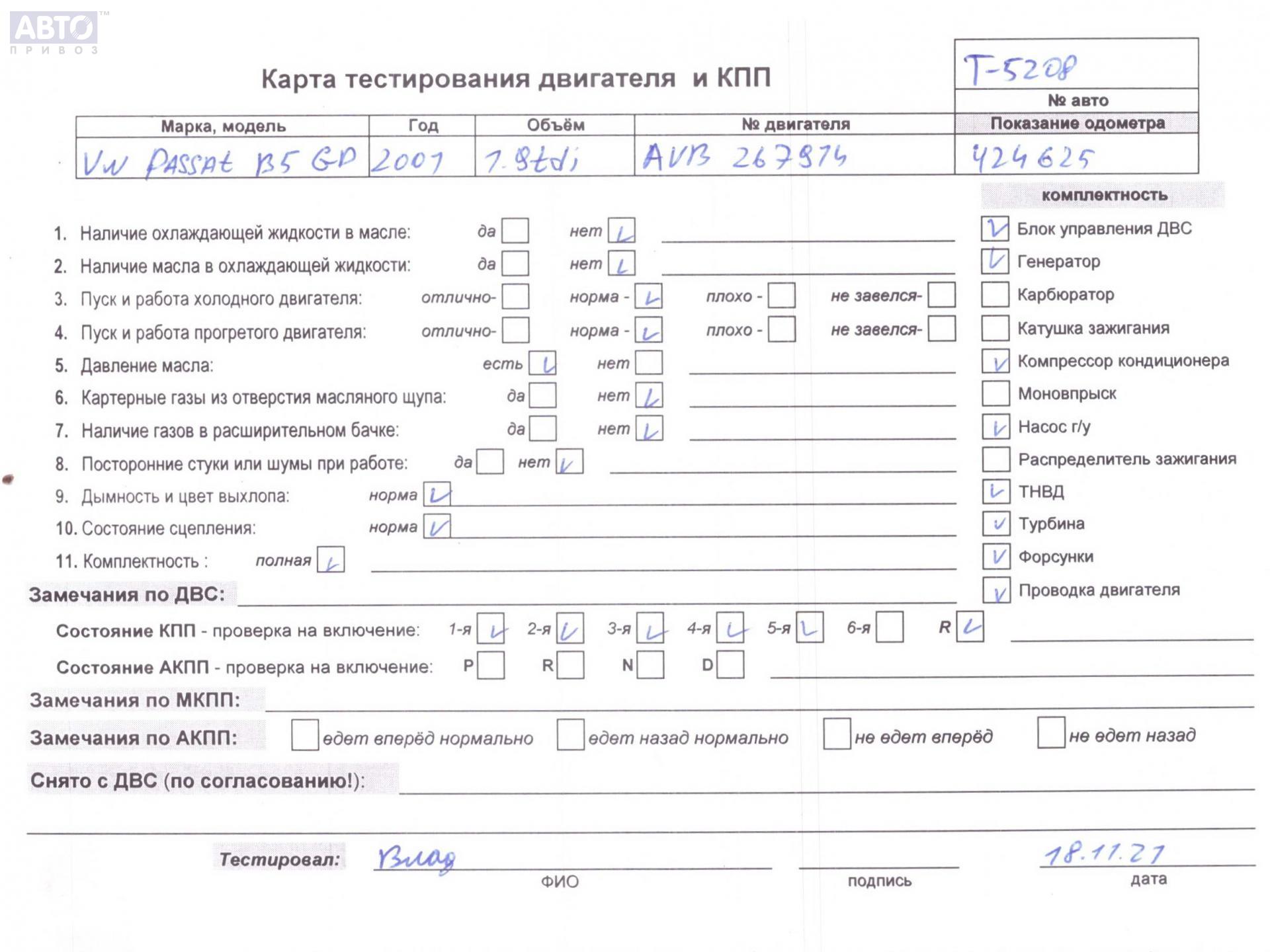 | Марка / Модель / Год: | Volkswagen Passat B5+ (GP) 2001 |