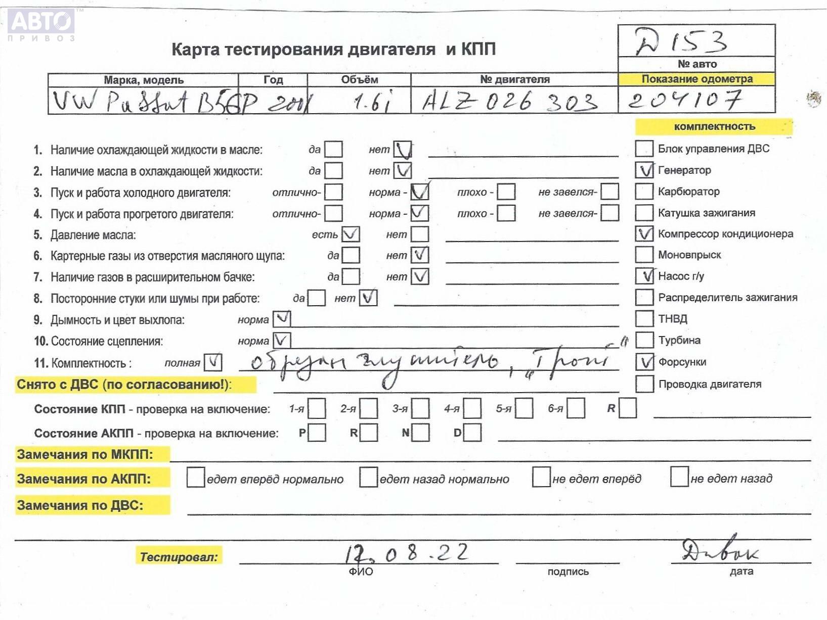 | Марка / Модель / Год: | Volkswagen Passat B5+ (GP) 2001 |