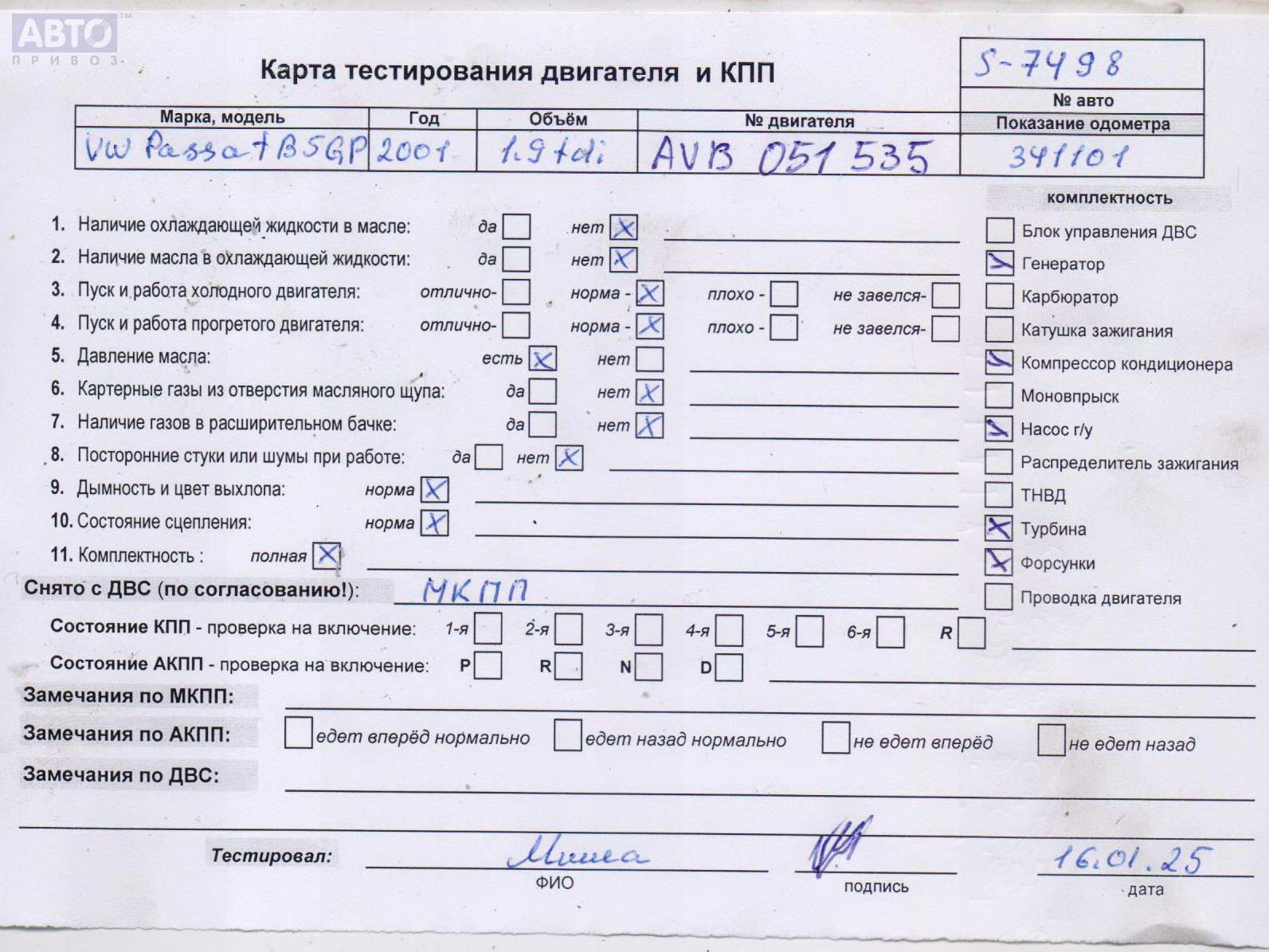 | Марка / Модель / Год: | Volkswagen Passat B5+ (GP) 2001 |