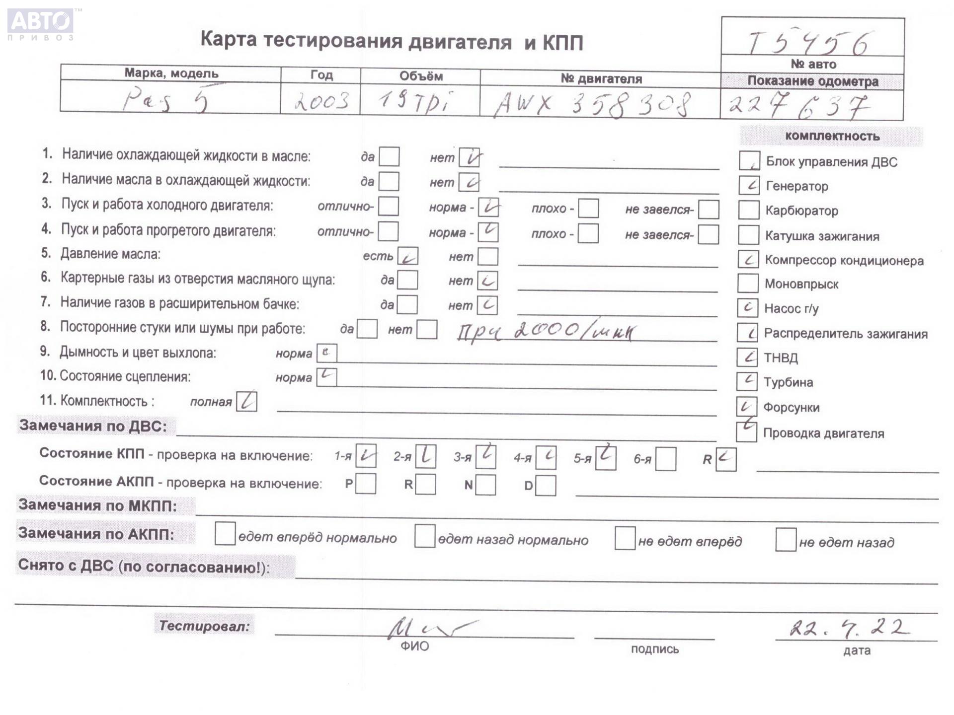 | Марка / Модель / Год: | Volkswagen Passat B5+ (GP) 2003 |