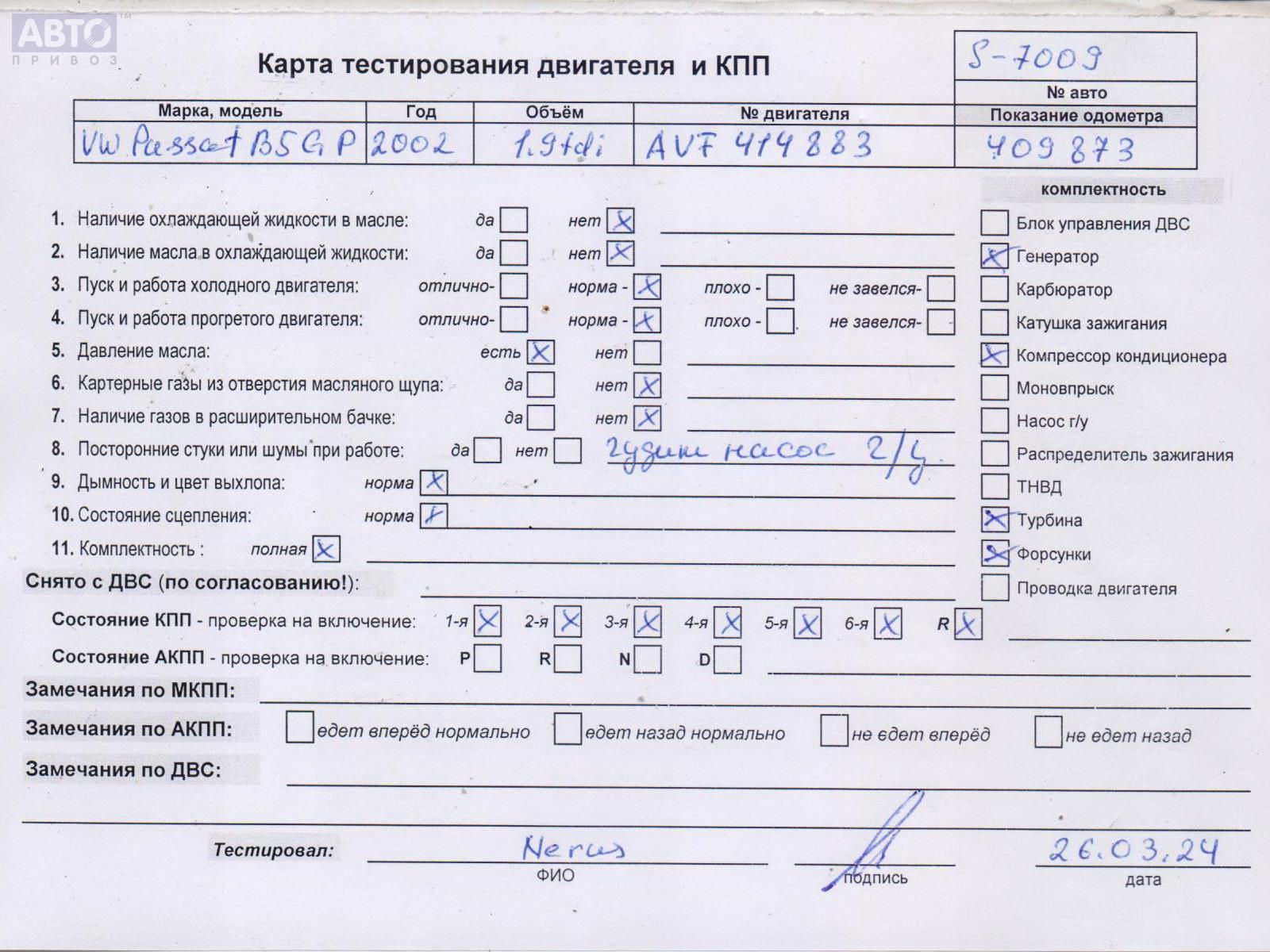 | Марка / Модель / Год: | Volkswagen Passat B5+ (GP) 2001 |