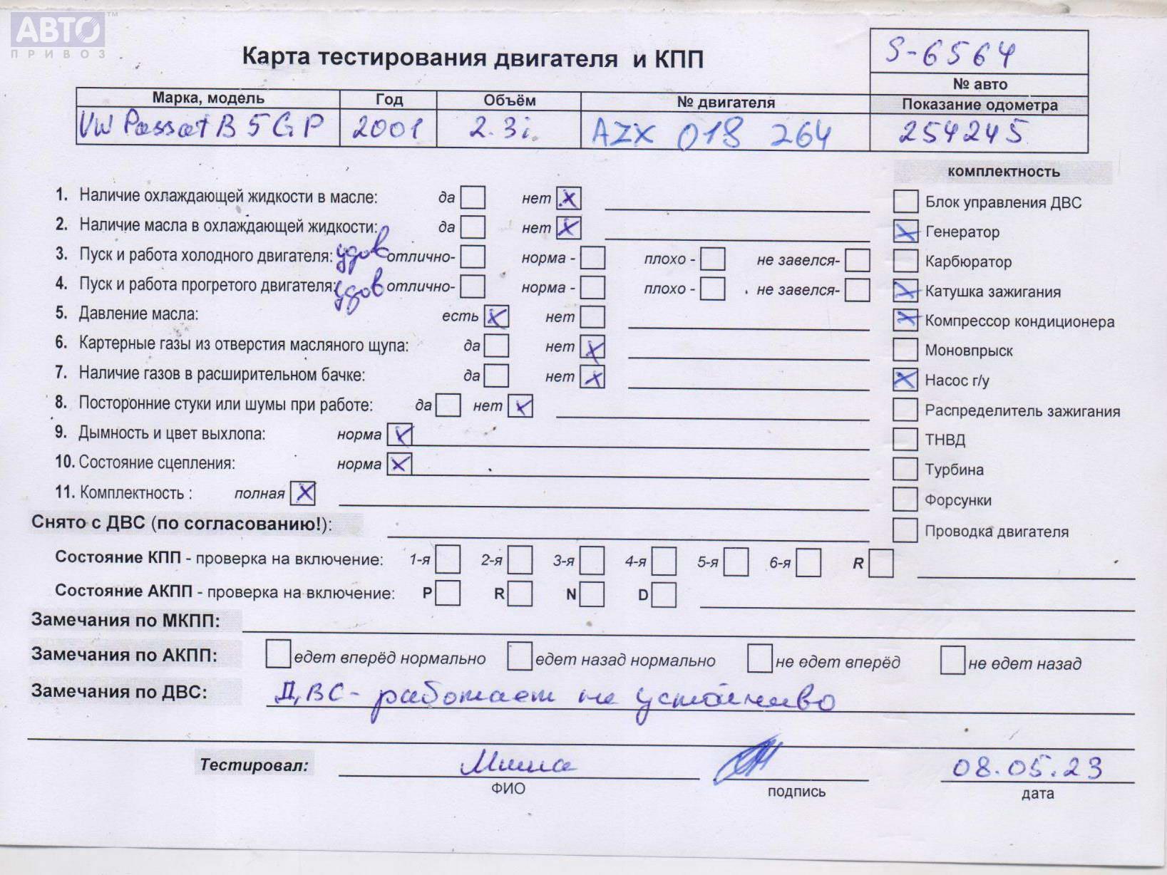 | Марка / Модель / Год: | Volkswagen Passat B5+ (GP) 2001 |