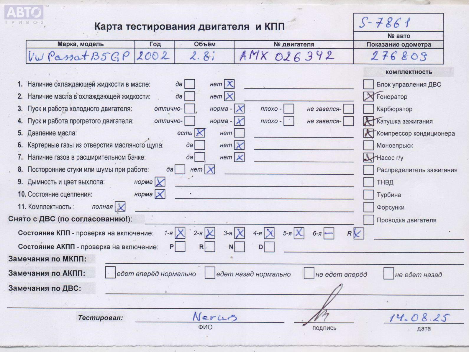 | Марка / Модель / Год: | Volkswagen Passat B5+ (GP) 2002 |