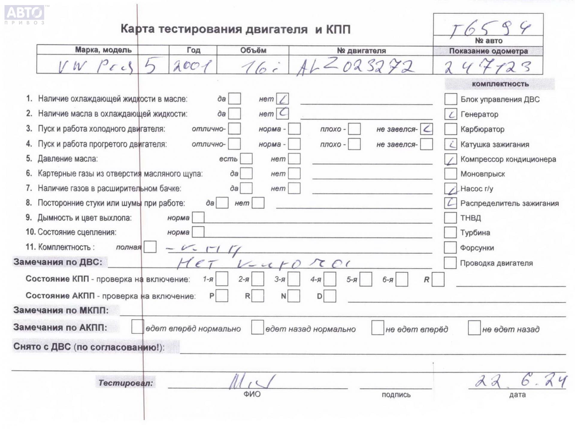 | Марка / Модель / Год: | Volkswagen Passat B5+ (GP) 2001 |