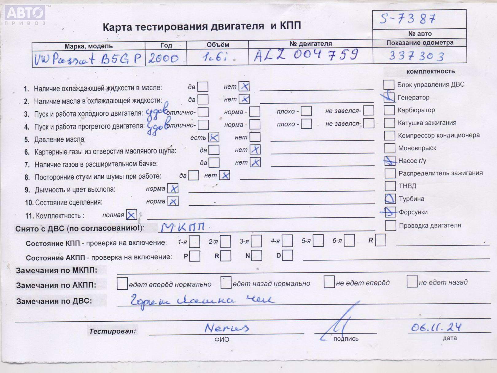 | Марка / Модель / Год: | Volkswagen Passat B5+ (GP) 2001 |