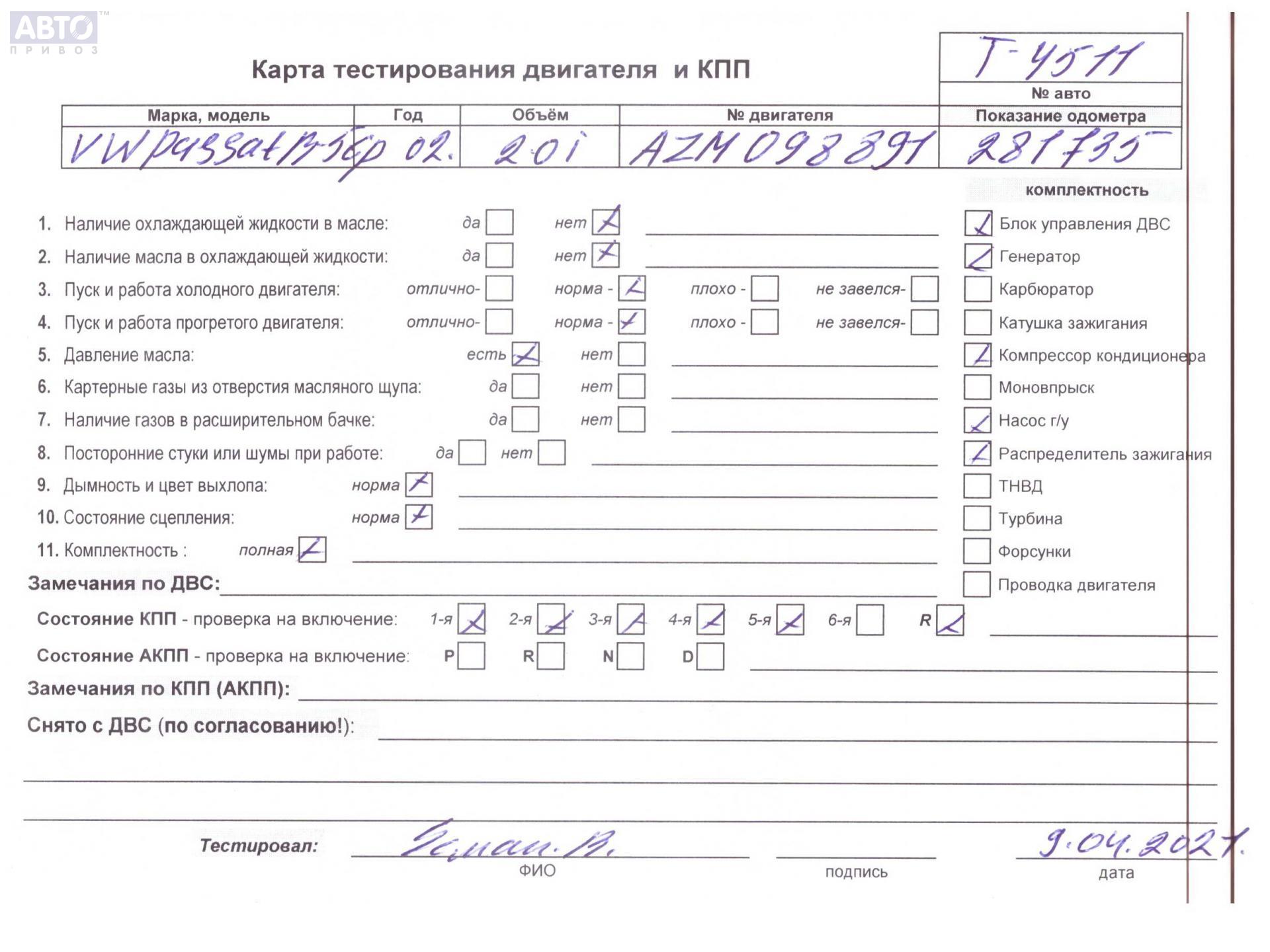 | Марка / Модель / Год: | Volkswagen Passat B5+ (GP) 2002 |