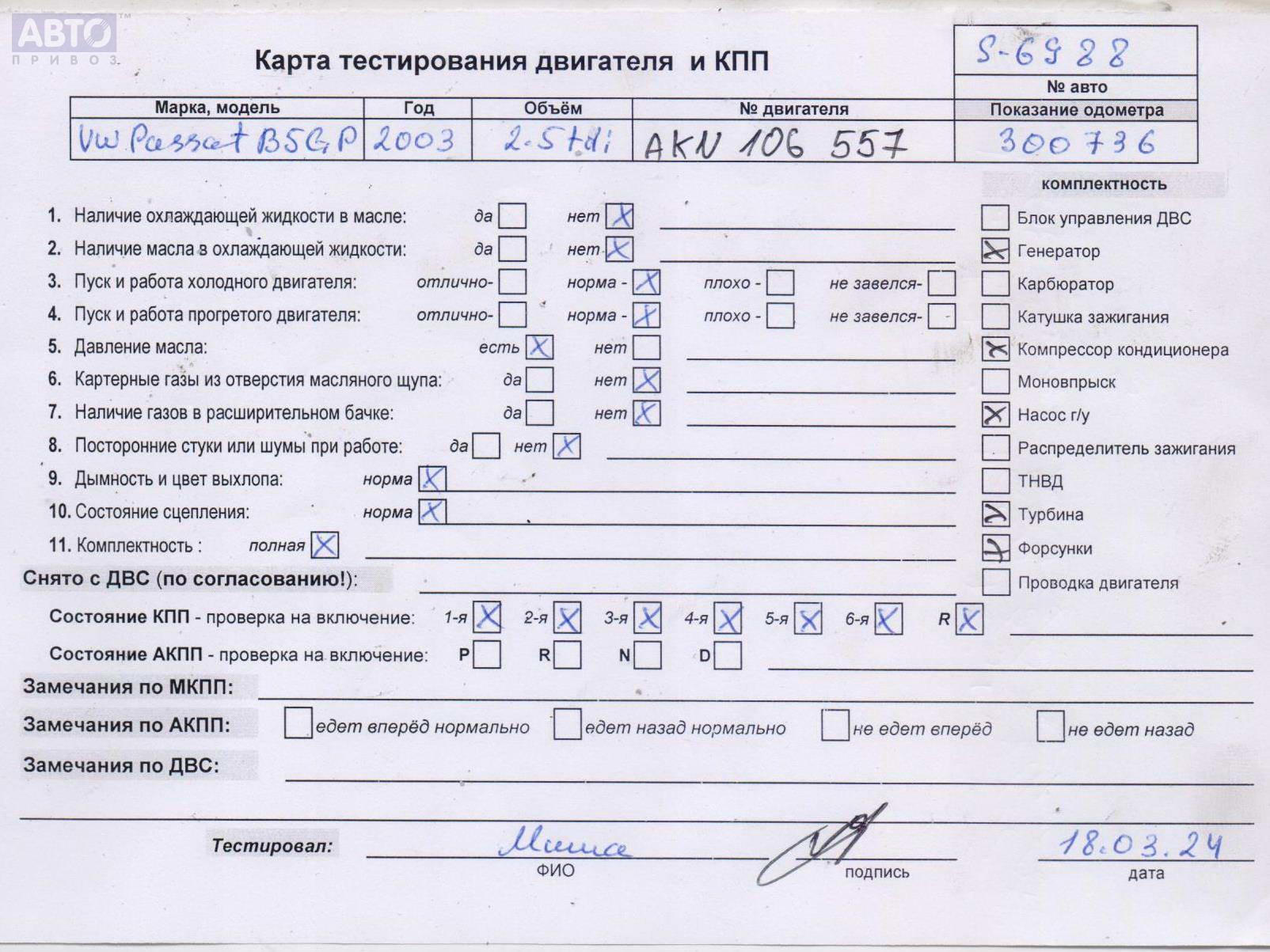 | Марка / Модель / Год: | Volkswagen Passat B5+ (GP) 2003 |