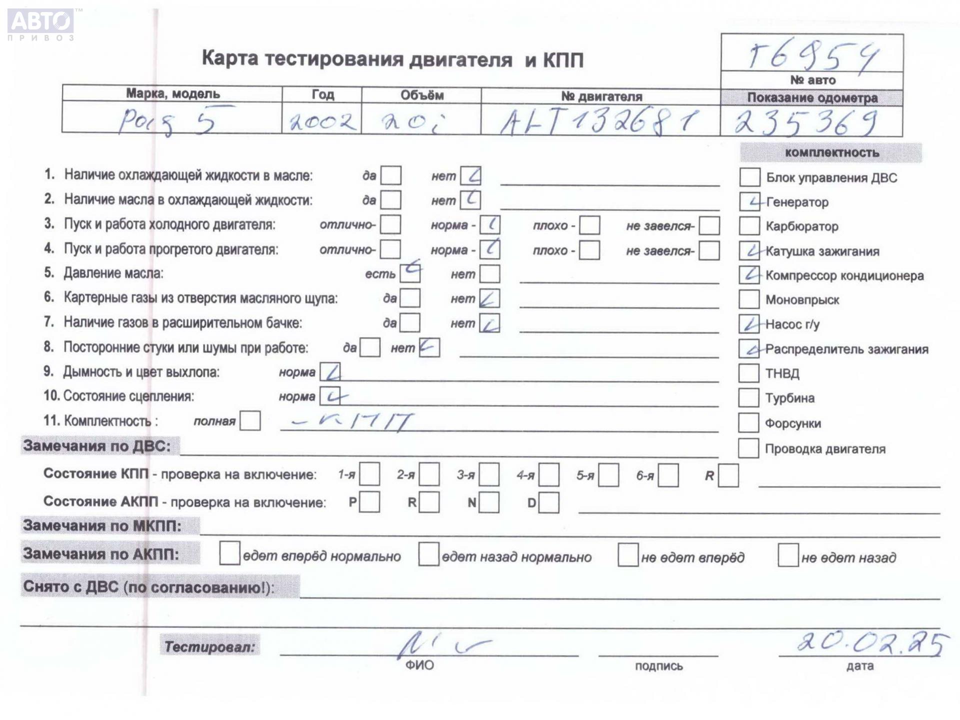 | Автомобиль / VIN: | T6954 WVWZZZ3BZ3P347919 |