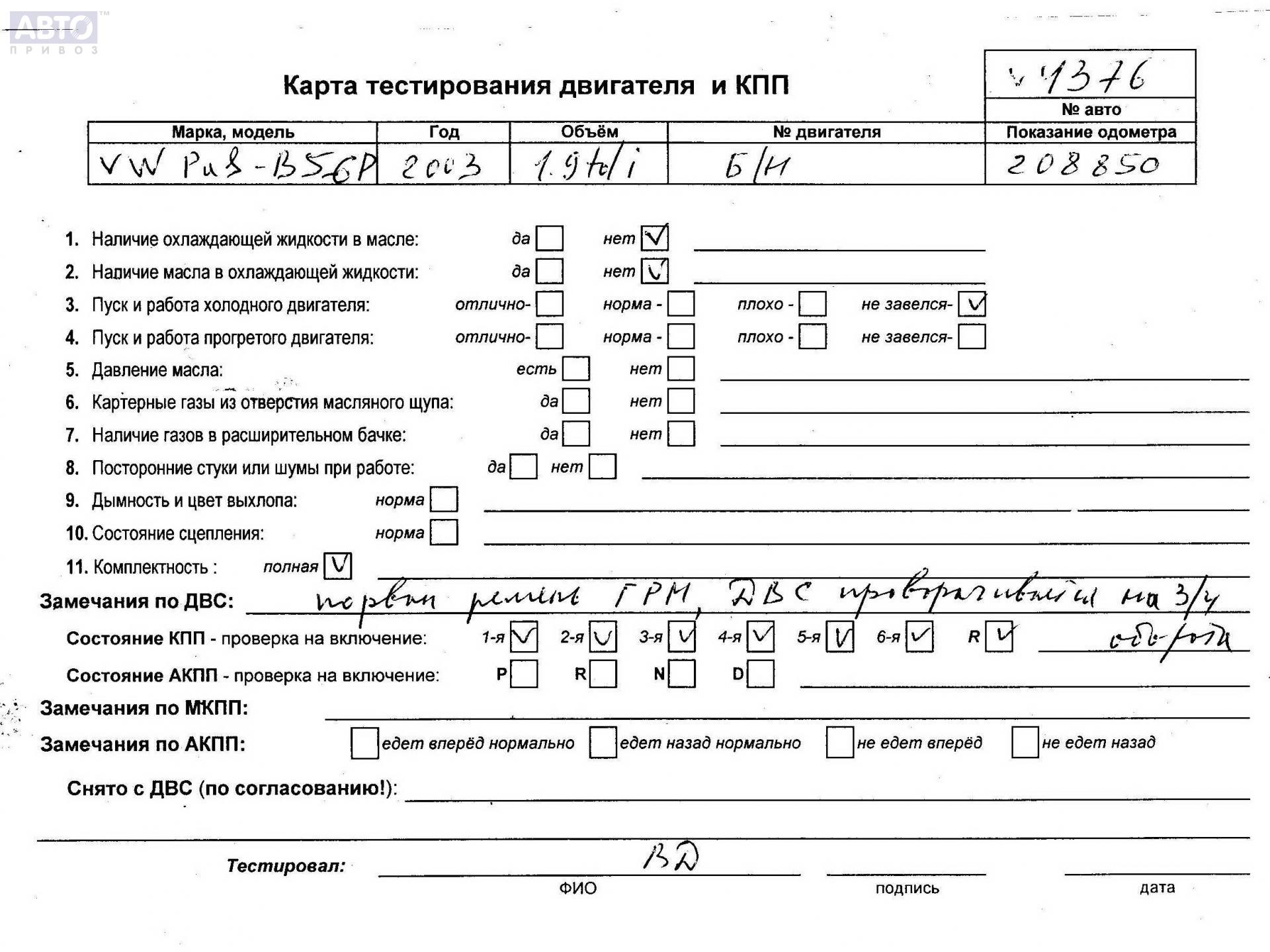 | Марка / Модель / Год: | Volkswagen Passat B5+ (GP) 2003 |
