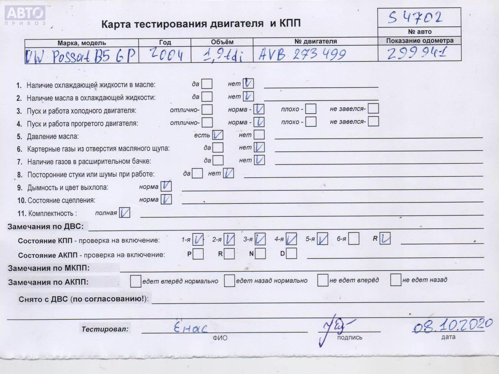 | Марка / Модель / Год: | Volkswagen Passat B5+ (GP) 2004 |