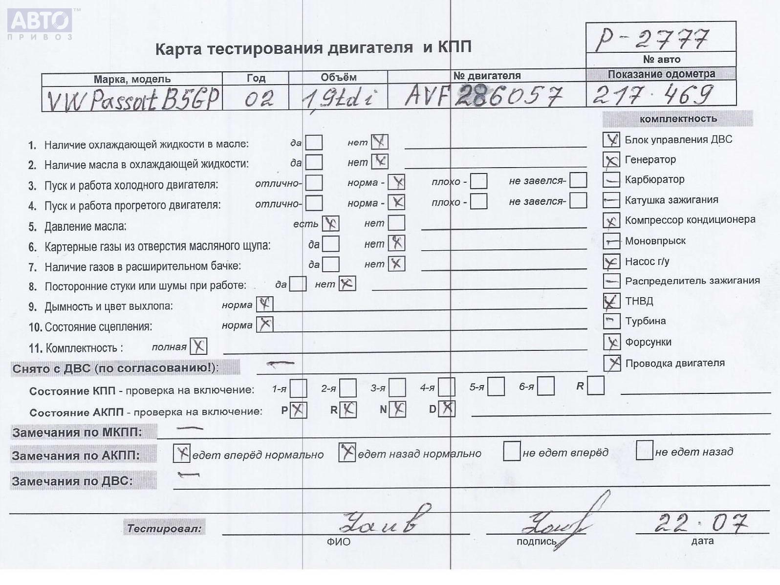 | Марка / Модель / Год: | Volkswagen Passat B5+ (GP) 2002 |