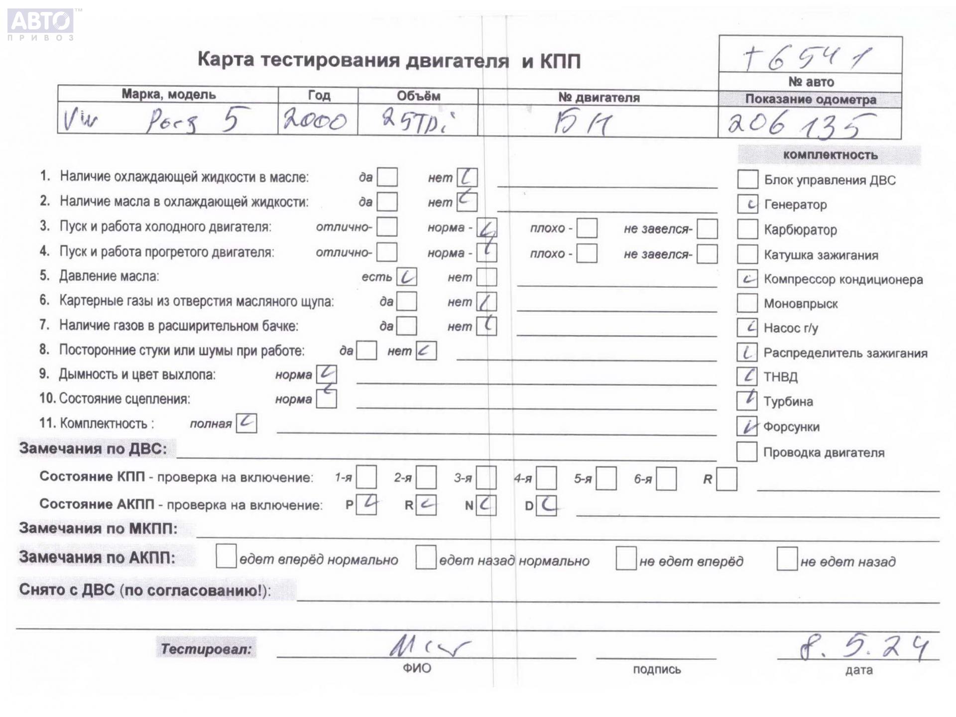 | Марка / Модель / Год: | Volkswagen Passat B5+ (GP) 2001 |