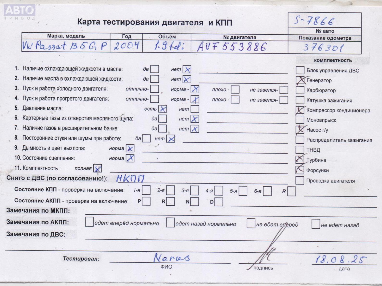 | Марка / Модель / Год: | Volkswagen Passat B5+ (GP) 2004 |