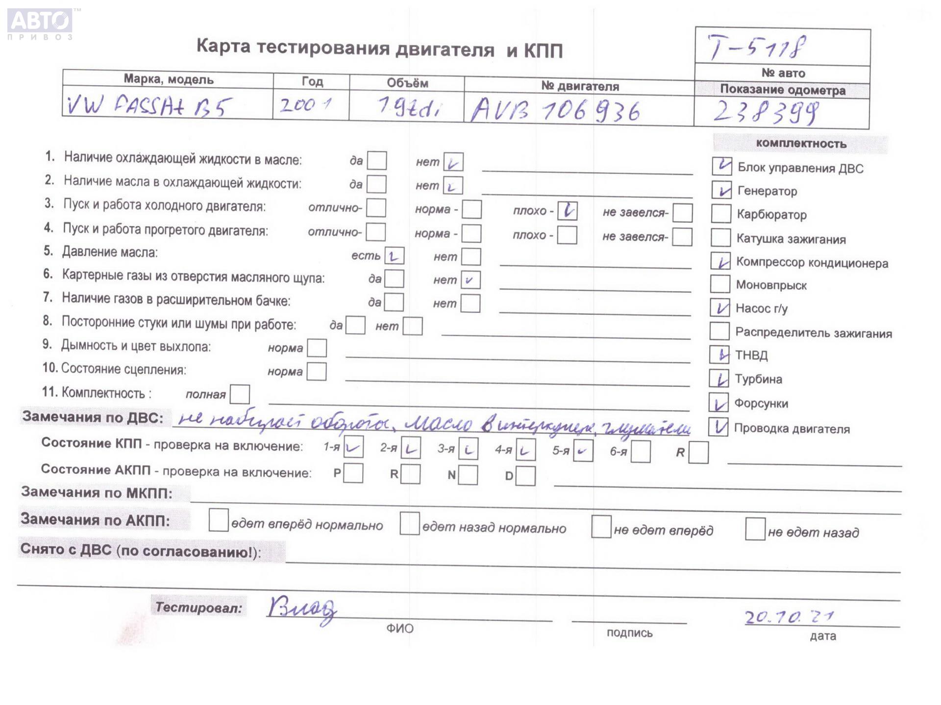 | Автомобиль / VIN: | T5118 WVWZZZ3BZ2P297277 |