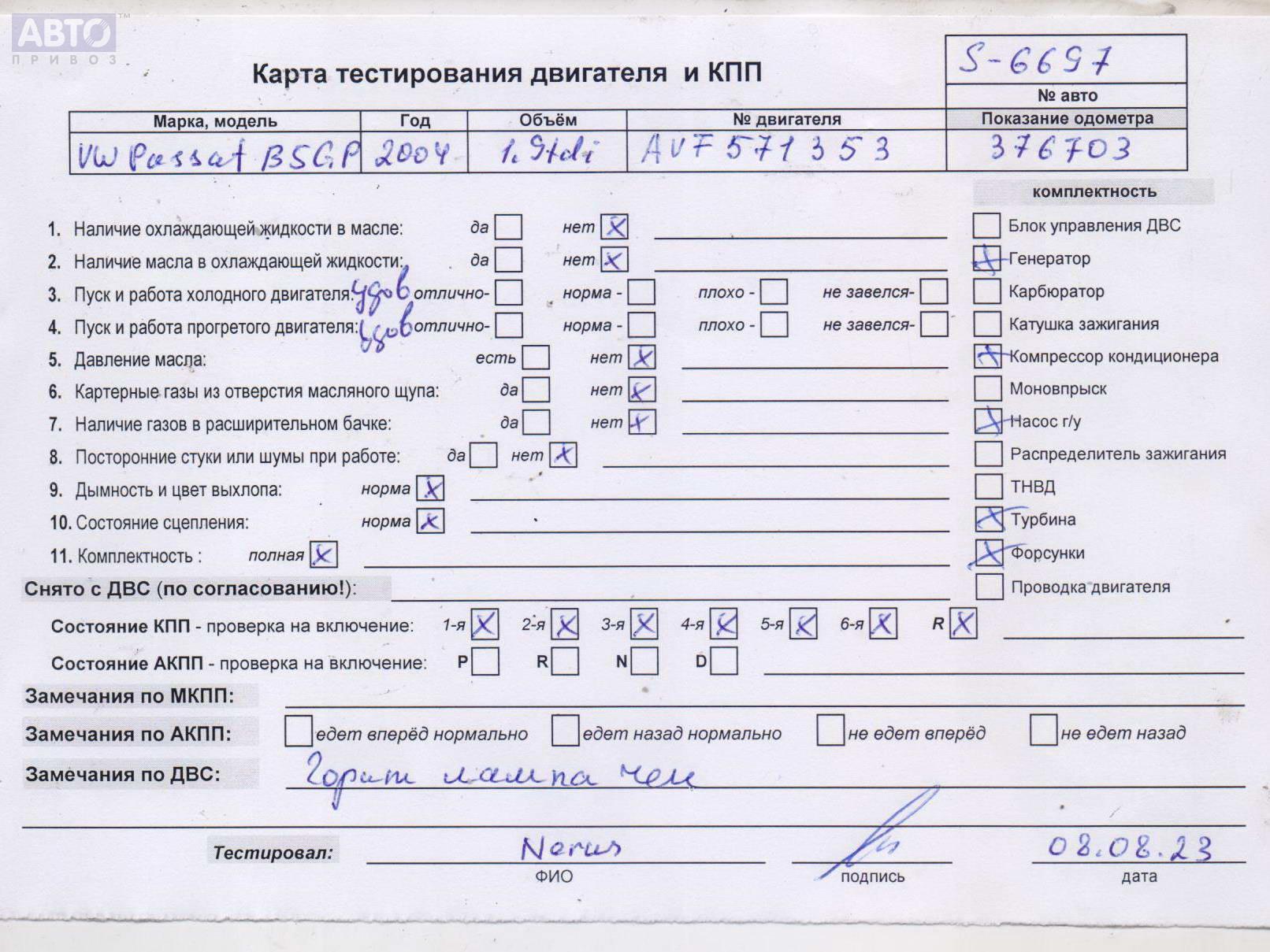 | Автомобиль / VIN: | S6697 WVWZZZ3BZ4E313907 |