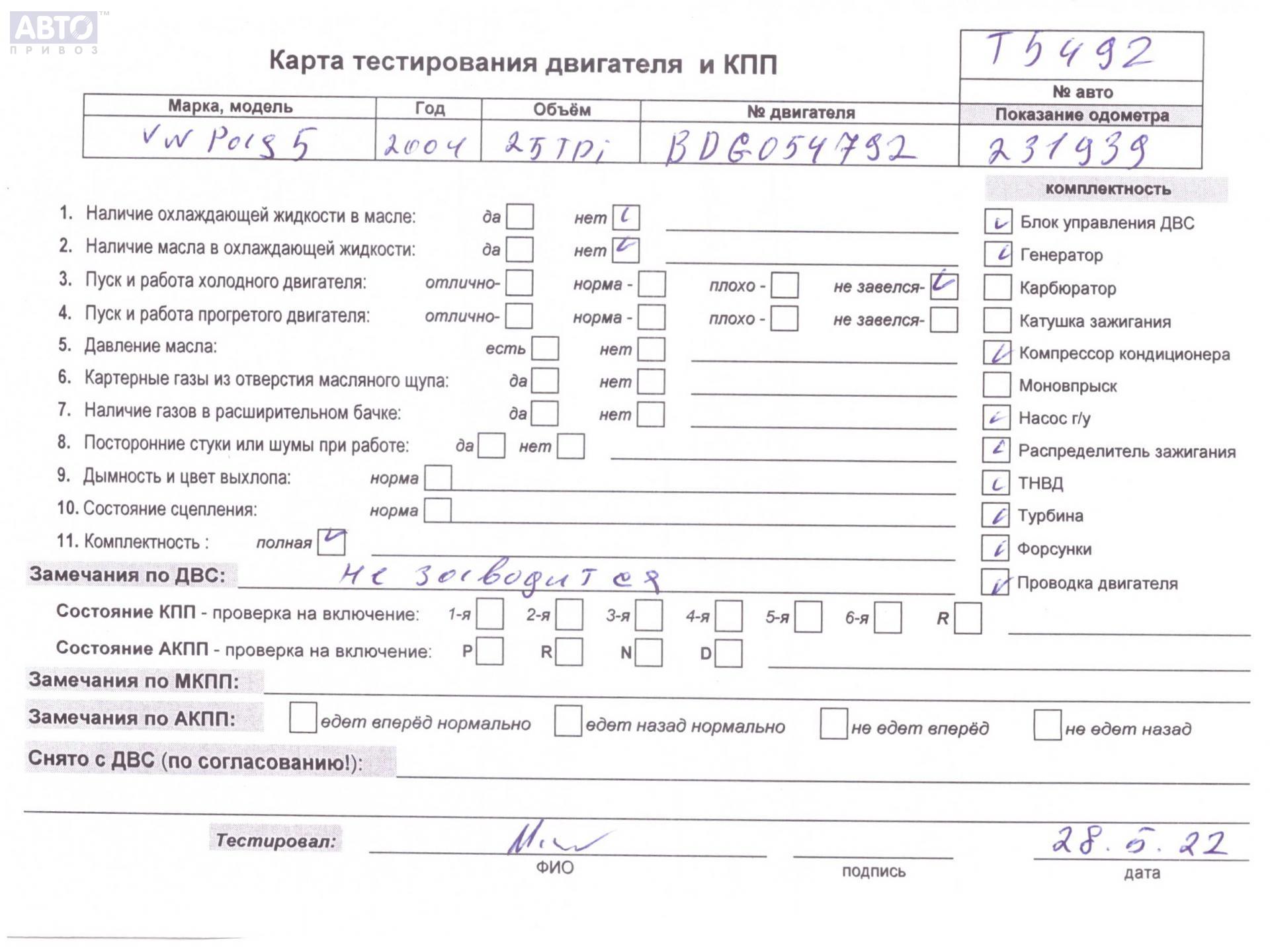 | Автомобиль / VIN: | T5492 WVWZZZ3BZ5E104448 |